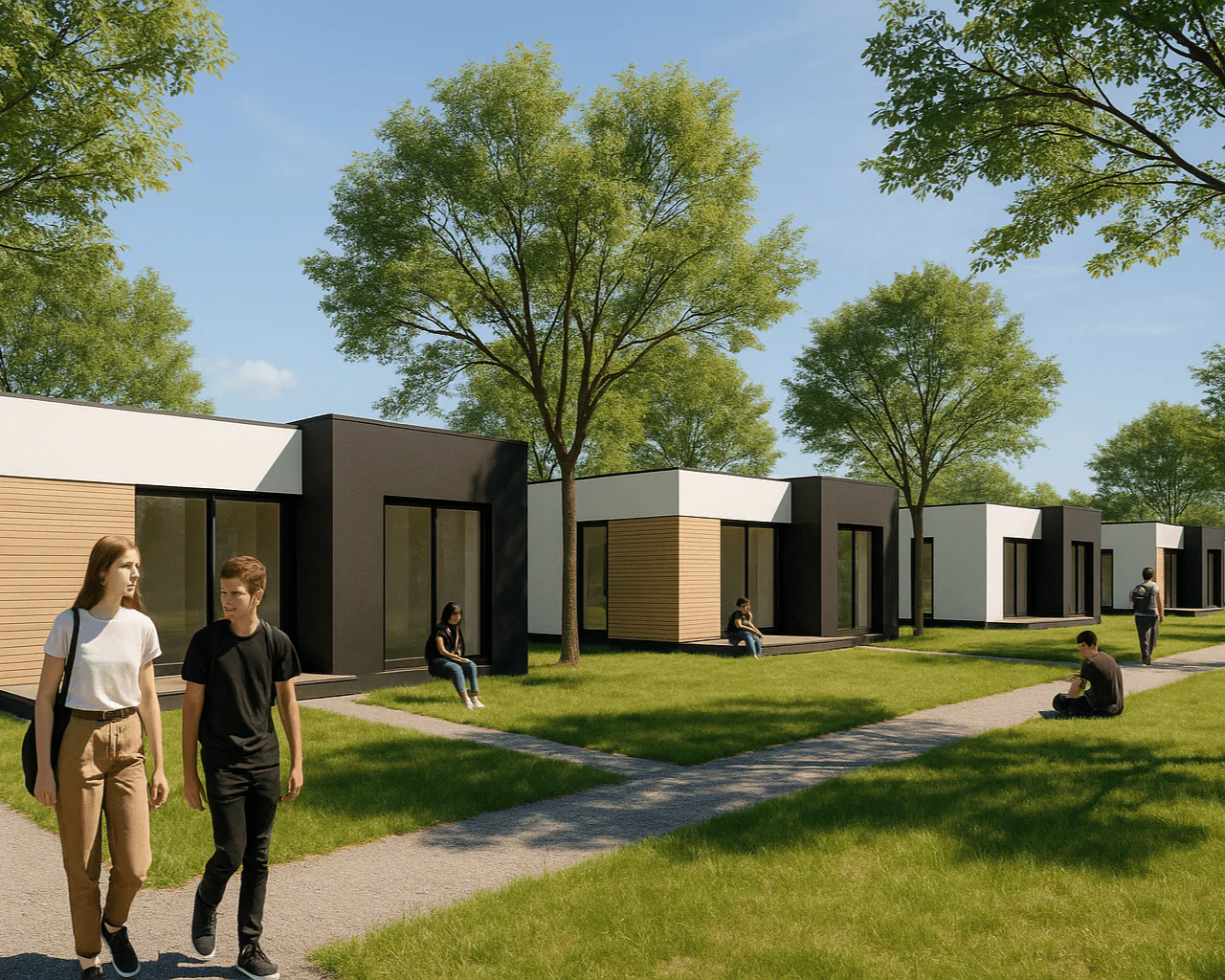 O projeto propõe um conjunto de módulos habitacionais pensados para estudantes, organizados em unidades individuais e zonas comuns, implantados num espaço natural cuidadosamente integrado. A proposta parte da ideia de coliving e profundamente ligado ao meio envolvente, promovendo o bem-estar, a autonomia e o sentido de comunidade.